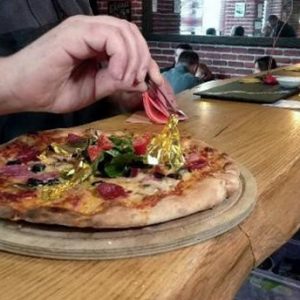 لا شك أن أغلبنا قد سمع عن الهمبرغر وشرائح اللحم والآيس كريم المعدّة بذهب عيار 24 قيراطًا، والتي وصلت أرقام مبيعاتها إلى خمسة أضعاف أو يزيد من سعر مثيلاتها من الأطعمة العادية. إلا أن الجديد في الأمر هو أن الشيف التركي “ايرفن يالجن”، المتخصص بالمطبخ الإيطالي، قد بدأ في تحضير الأطعمة المترفة، وقد خبز بالفعل البيتزا الذهبية.