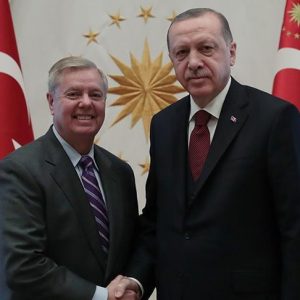 التقى الرئيس التركي رجب طيب أردوغان، اليوم الجمعة، وفدا أمريكيا برئاسة السيناتور ليندسي غراهام، في القصر الرئاسي بالعاصمة أنقرة.