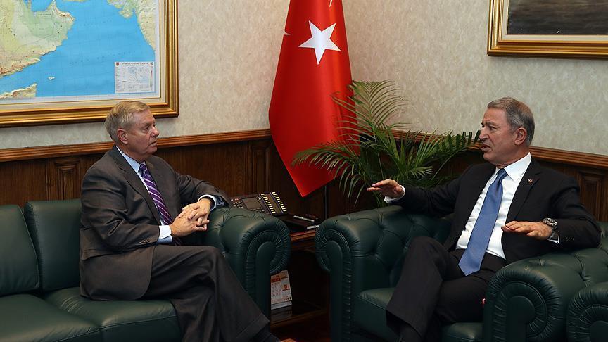 بحث وزير الدفاع التركي خلوصي أكار، مساء الجمعة، مع السيناتور الأمريكي ليندسي غراهام، آخر التطورات على الساحة السورية.