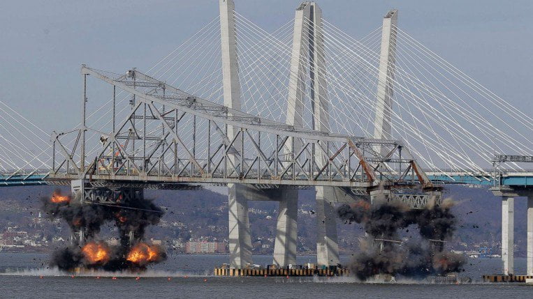 وجرت عملية التفجير وسط طقس بارد وبواسطة كميات كبيرة من المتفجرات التي حولت الجسر خلال لحظات إلى ركام غرق في نهر هدسون، فيما بقي الجسر الجديد شامخا بلمعانه.