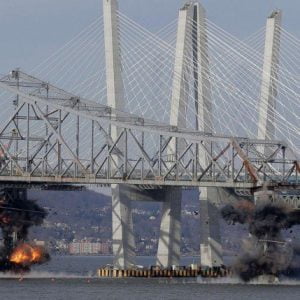 اجتمع مئات الأشخاص على ضفاف نهر مدينة هدسون في ولاية نيويورك الأميركية لمشاهدة لحظات تاريخية تكمن في تفجير بقايا جسر “تابان زي” القديم.