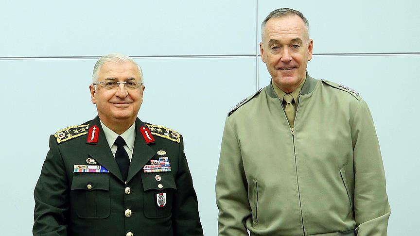 بحث رئيس الأركان الأمريكي جوزيف دانفورد مع نظيره التركي يشار غولار، هاتفيا، الوضع الأمني في سوريا.