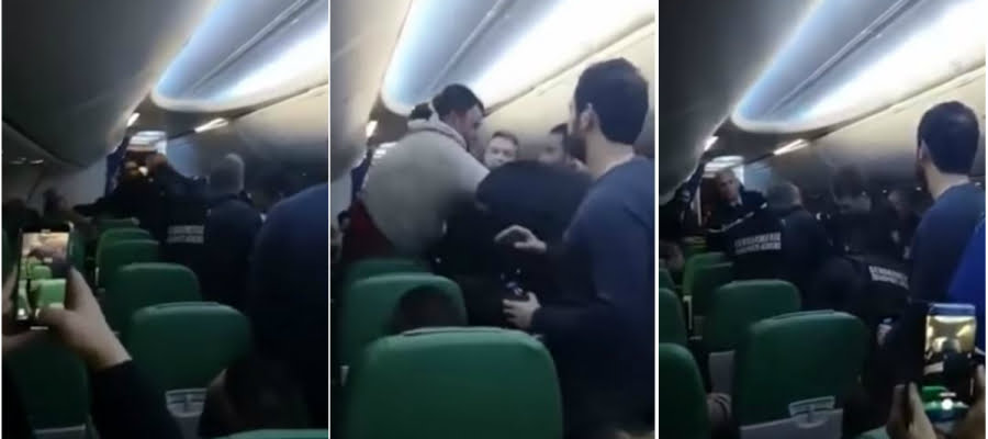 وتُظهِر اللقطات مشادة داخل الطائرة أثناء مغالبة الضباط للرجل المجهول ومحاولة السيطرة عليه قبل إلقاء القبض عليه.