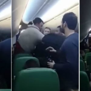 وتُظهِر اللقطات مشادة داخل الطائرة أثناء مغالبة الضباط للرجل المجهول ومحاولة السيطرة عليه قبل إلقاء القبض عليه.