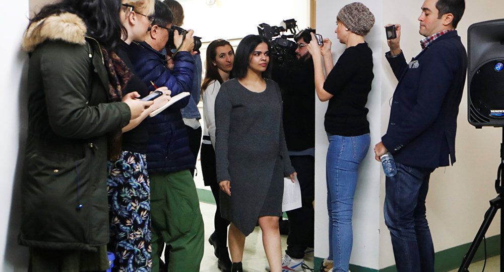 ووصلت رهف، إلى تورونتو، مؤخرا، بعد موافقة كندا على لجوئها إلى البلاد بعد هروبها من أسرتها عبر تايلاند. وعبرت القنون صالة الوصول الدولية بمطار بيرسون بتورونتو، ترافقها وزيرة الخارجية كريستيا فريلاند، والتي وصفتها بأنها كندية جديدة تتسم بالشجاعة”.