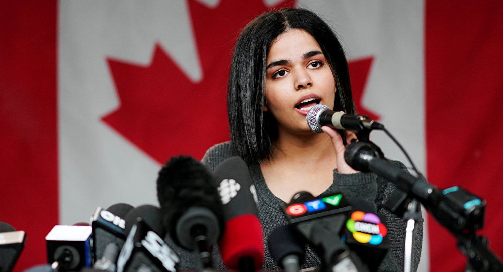 ووصلت رهف، إلى تورونتو، مؤخرا، بعد موافقة كندا على لجوئها إلى البلاد بعد هروبها من أسرتها عبر تايلاند. وعبرت القنون صالة الوصول الدولية بمطار بيرسون بتورونتو، ترافقها وزيرة الخارجية كريستيا فريلاند، والتي وصفتها بأنها كندية جديدة تتسم بالشجاعة”.