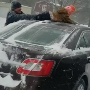 غطّى الثلج مدينة أوهايو الأميركية، فاضطر الأب إلى استخدام ابنه كأداة لإزالة الثلج عن سيارته. فيظهر في الفيديو وهو يحمله، قبل أن يضعه على ظهر السيارة ويزيل بجسده الثلج.