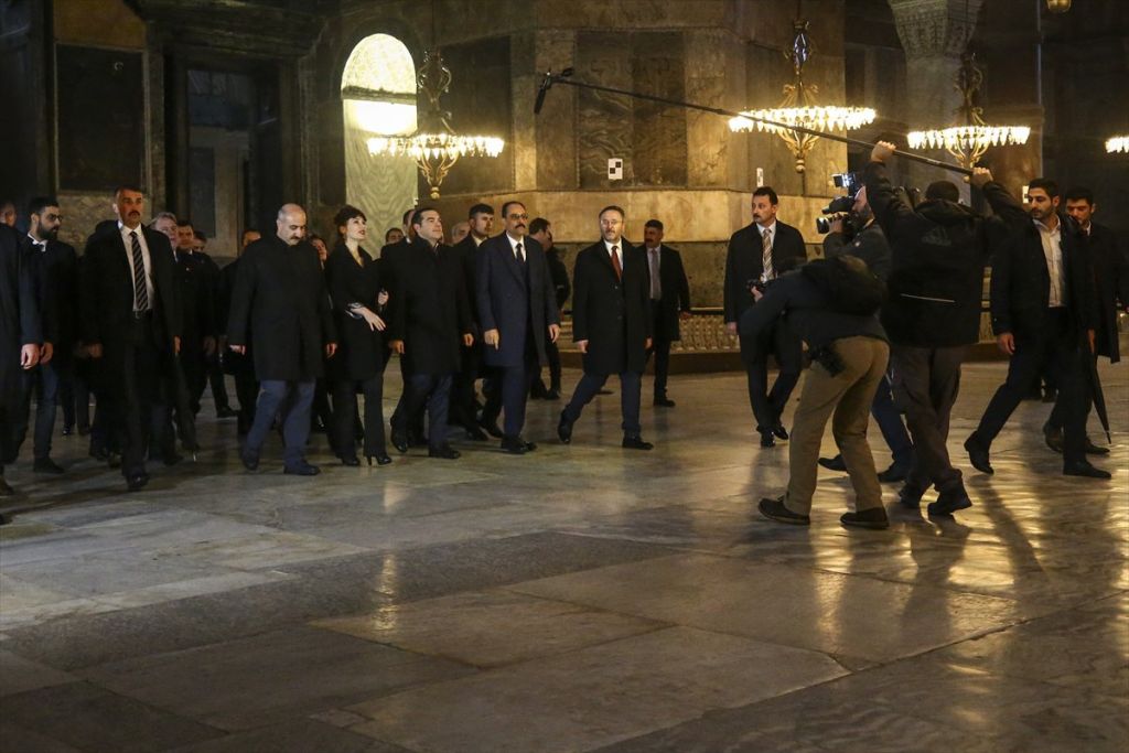 ورافق تسيبراس في جولته بالمتحف من الجانب التركي، الناطق باسم الرئاسة إبراهيم قالن ومدير مؤسسة الثقافة والسياحة في إسطنبول جوشقون يلماز.
