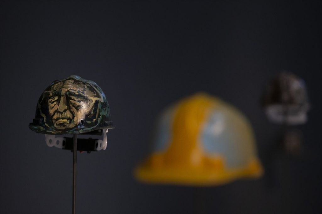 حول مهندس جيوفيزيائي تركي مجموعة كبيرة من خوذ السلامة استخدمها في العديد من مشاريعه إلى أعمال فنية عرضها مؤخرا بالعاصمة أنقرة.