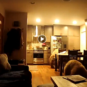 ويظهر في مقطع الفيديو، الذي تم تصويره بواسطة كاميرا مراقبة مثبتة في المنزل، أن أحد الدببة قام بفتح الثلاجة للبحث عن الطعام والثاني أخذ يستريح في غرفة الجلوس.