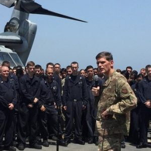 وكان قائد القيادة المركزية الامريكية وصل الأحد إلى العراق في زيارة تهدف إلى إجراء محادثات مع مسؤولين أميركيين وعراقيين، في خضم القرار الذي اتخذه ترامب لسحب القوات من سوريا إلى العراق، وبالتزامن مع قرب إعلان التحالف الدولي القضاء التام على تنظيم “داعش”.