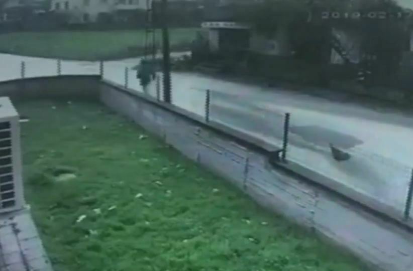 رصدت كاميرا مراقبة بإحدى شوارع هطاي التركية لحظات طريفة لطفل وهو يهرب من ديك.