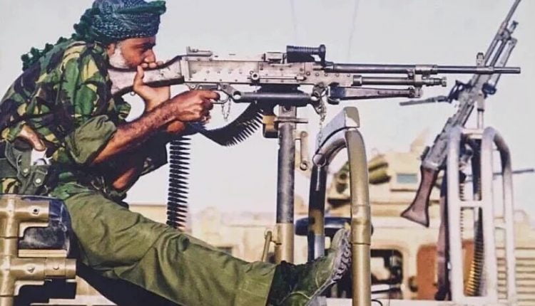 وبحسب الفيديو، فقد قام السلطان “قابوس” بالتصويب على أحد الاهداف البعيدة عبر رشاش من العيار الثقيل.