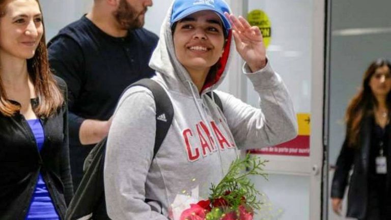 نشرت اللاجئة السعودية في كندا رهف محمد، صورا لها وهي ترفع علم المثليين، خلال مشاركتها في فعاليات اليوم العالمي للمرأة بتورونتو.