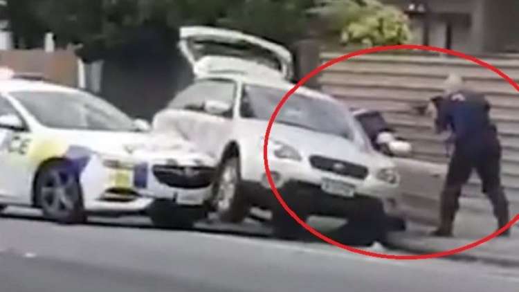 رصدت مقطع فيديو انتشر في مواقع التواصل الاجتماعي، لحظة قبض شرطي على منفذ المجزرة الوحشية، اليوم الجمعة في مسجدين بنيوزيلندا، ومنعه من الهروب.