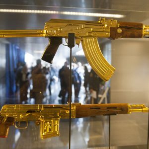 بعد غزو العراق في عام 2003، وجد الجيش الأمريكي العديد من الأسلحة الذهبية بين كنوز صدام حسين العديدة. علاوة على ذلك، فإن الجنود الذين كانوا أول من دخل بغداد وتولوا حراسة القصور اتهموا بالسرقة والنهب.