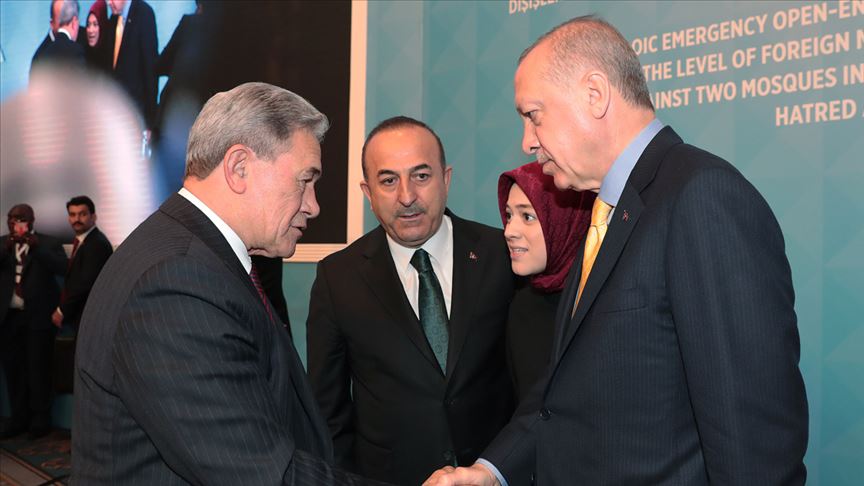 استقبل الرئيس التركي رجب طيب أردوغان، الجمعة، وزير الخارجية نائب رئيس الوزراء النيوزيلندي، وينستون بيترز، والوفد المرافق له في مدينة إسطنبول.