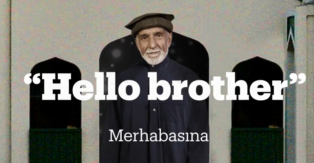 ونشر أردوغان مقطع فيديو أعدته قناة “تي آر تي وورلد” الحكومية الناطقة بالانكليزية، للشيخ الأفغاني داود نبي (71 عاما)، حيث تصادف وجوده عند بوابة المسجد مع دخول القاتل، فكان أول وآخر ما تلفظ به بعد قدوم القاتل برينتون تارانت هو “مرحبا أخي”.