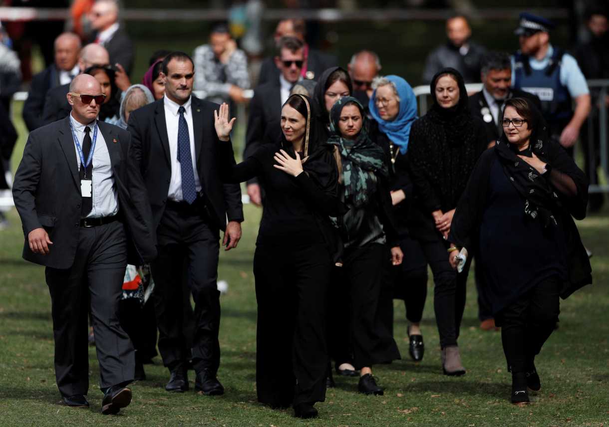 ويوم الجمعة، شاركت رئيسة وزراء نيوزيلندا في تشييع جثامين الضحايا، وحضرت إلى مدينة كرايست تشيرش وهي ترتدي غطاء الرأس وألقت كلمة مقتضبة استشهدت فيها بحديث نبوي عن التآزر والتضامن.