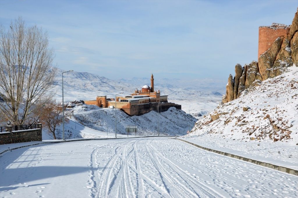 اتّشح قصر إسحاق باشا، الواقع بقضاء “دوغو بيازيد”،في ولاية أغري شرقي تركيا ،بحلة ناصعة البيضاء، رسمت منظرا بديعا لتحفة عثمانية لم تتعود الثلج في مثل هذا الوقت من العام.