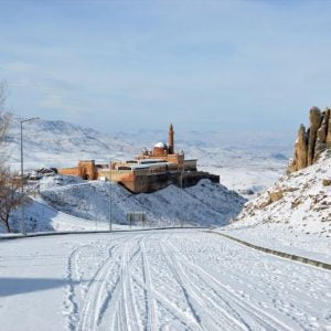 اتّشح قصر إسحاق باشا، الواقع بقضاء “دوغو بيازيد”،في ولاية أغري شرقي تركيا ،بحلة ناصعة البيضاء، رسمت منظرا بديعا لتحفة عثمانية لم تتعود الثلج في مثل هذا الوقت من العام.