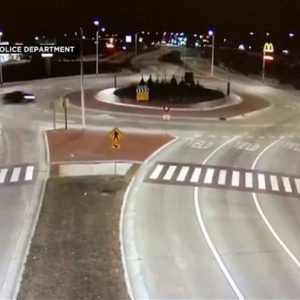 ويُظهر الفيديو، الذي نُشر على وسائل التواصل الاجتماعي، السائق وهو يصطدم بعلامة مرورية، ويتحرك من السيارة أثناء عبوره عبر الطريق الفارغ.