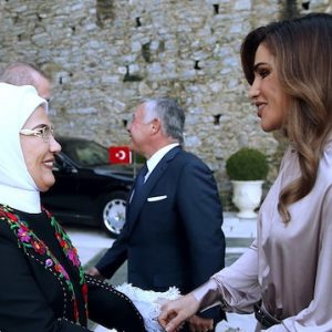 واصطحبت الملكة سيدة تركيا الأولى إلى صالة عرض المنتجات الحرفية لمؤسسة نهر الأردن في عبدون، وأطلعتها على منتجات السيدات الأردنيات وما تتميز به تلك المعروضات من محاكاتها للتراث الأردني وتصاميمها العصرية، كما نقلت وكالة “بترا”.