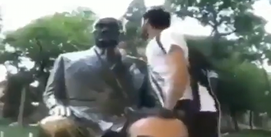 İstanbul Fatih'te çekildiği iddia edilen video'da iki arap Atatürk büstüne saldırıyor. pic.twitter.com/eJ4Wt0kTbk