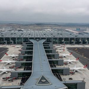 وتظهر الصور والمشاهد التي التقطتها شركة “İGA” المشغلة للمطار عبر مروحية، مشاهد لمرابض ومحطات الطيران داخل المطار.