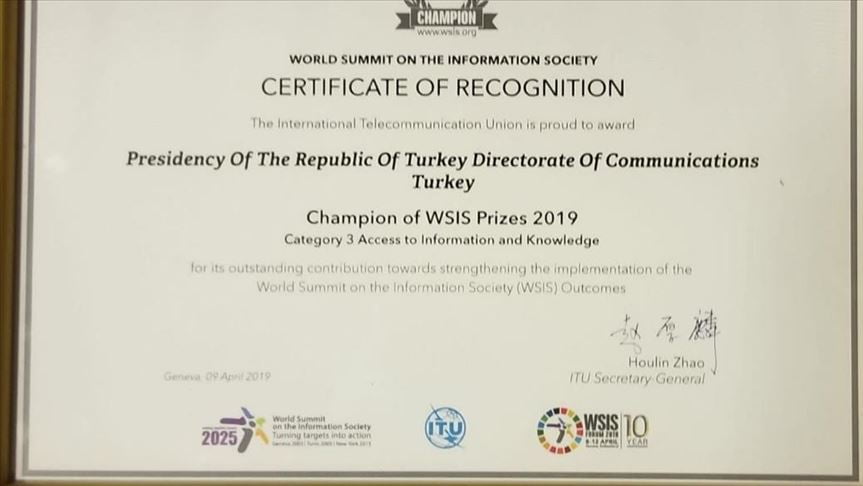 أعلن رئيس دائرة الاتصال بالرئاسة التركية، فخر الدين ألطون، عن فوز مشروع “CİMER”، بجائزة “Wsıs prize 2019 champion”، خلال القمة العالمية حول معلومات الاتصال.