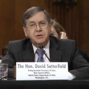 ويعمل ساترفيلد حاليًّا مستشارًا مسؤولًا عن العلاقات مع الشرق الأدنى في الخارجية الأمريكية.