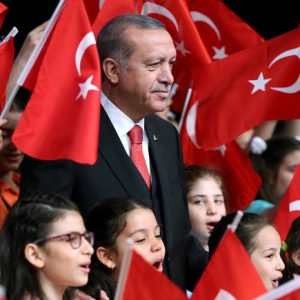 Turkish President Tayyip Erdogan poses with children during a ceremony to mark the National Sovereignty and Children's Day at the Presidential Palace in Ankara, Turkey, April 23, 2017. Murat Cetinmuhurdar/Presidential Palace/Handout via REUTERS ATTENTION EDITORS - THIS PICTURE WAS PROVIDED BY A THIRD PARTY. FOR EDITORIAL USE ONLY. NO RESALES. NO ARCHIVE.