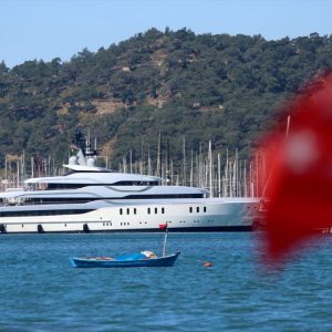 رسا يخت “Tango”، المملوك لرجل أعمال روسي، اليوم الإثنين، في ولاية موغلا السياحية، غربي تركيا، ليتزود بـ 160 ألف لتر من الوقود.