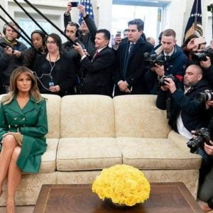 الصورة المنشورة ظهرت فيها ميلانيا، بثوب أخضر طويل على الأريكة الصفراء الطويلة في البيت الأبيض محاطة بالطاقم الرئاسي وبالمصورين، لكن الأمر لم يتوقف عند ذلك، بعد أن أرفقت في تعليقات صور ساخرة أنتجت عبر الفوتوشوب.