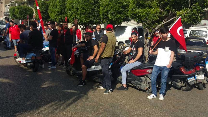 ورفع المشاركون الأعلام التركية تحت أهازيج موسيقى المسلسل التركي “قيامة أرطغرل”، وشعارات مؤيدة لتركيا.