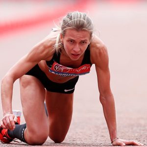 ولكن العداءة الشهيرة، هارلي كاروثرز، لم تتحمل وسقط قبل وصولها إلى النهاية بخطوات قليلة، حيث أكملت السباق زحفا على يديها وركبتيها إلى أن وصلت إلى خط النهاية.