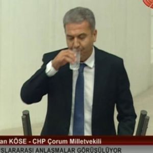 وخلال جلسة البرلمان، أقدم النائب التركي، من حزب الشعب الجمهوري، توفان كوسي، بشرب الماء، ما أثار حفيظة نواب من حزب العدالة والتنمية الحاكم.
