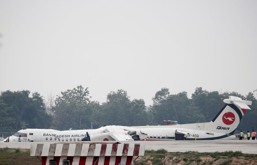 #Breaking: Plane in #Myanmar makes a nose dive on landing when the front landing gear failed to deploy, all of the passengers on the plane are safe and got not injured during the emergency landing. pic.twitter.com/6q6HbFEv9t
