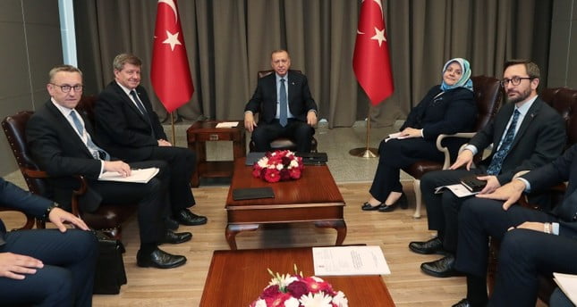 وحضر اللقاء رئيس دائرة الاتصال في الرئاسة التركية فخر الدين ألطون، والمتحدث باسم الرئاسة إبراهيم قالن، ووزيرة العمل والخدمات الاجتماعية والأسرة زهراء زمرّد سلجوق.