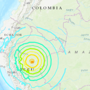 وقالت هيئة المسح الجيولوجي الكولومبية، إن مركز الزلزال وقع على بعد 83 كم جنوب بلدة لاغوناس شمال بيرو وعلى عمق 105 كيلومترات.