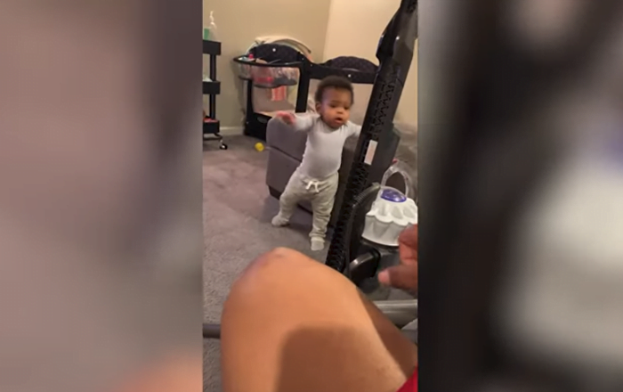 وتظهر الطفلة، البالغة من العمر 11 شهرا، في الفيديو مستندة إلى أريكة حين يشغل الأب مكنسة كهربائية تصدر صوتا مرتفعا، ما يخيف الطفلة ويدفعها لمحاولة السير سريعا بعيدا عن مصدر هذا الصوت المزعج.