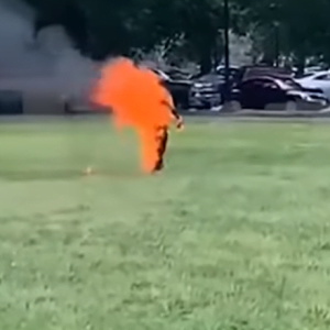 وتظهر لقطات تم تداولها على وسائل التواصل الاجتماعي، وصول الشرطة إلى الموقع وإطفائها النار التي اشتعلت بالرجل.