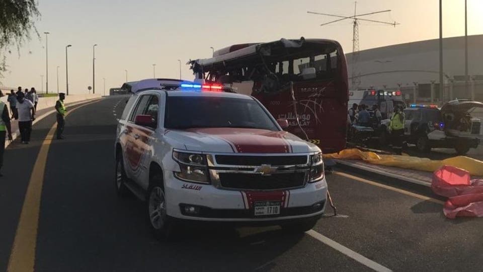 قالت شرطة دبي على تويتر يوم الخميس إن 17 شخصا لاقوا حتفهم عندما اصطدمت حافلة كانت تقلهم بلوحة إرشادية على إحدى الطرق.