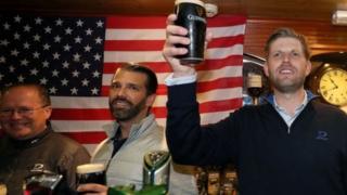 وقد عمد ولدا ترامب إلى ملء الأكواب بنفسيهما ببيرة الغينيس، وسط صيحات الابتهاج من قبل الحضور، والتقطا صورا مع السكان المحليين خارج الحانات التي زاراها.
