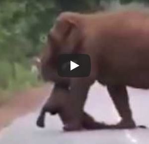 تداول مستخدمو وسائل التواصل الاجتماعي مقطع مصور مؤثر لفيلة تحمل جثة طفلها الصغير وتعبر إحدى الطرق إلى الغابة.