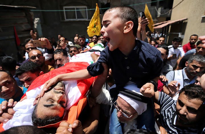 لقطات مؤثرة لنجل شهيد فلسطيني خلال تشييعه بغزة (شاهد)
