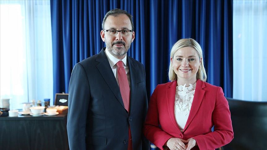 التقى وزير الشباب والرياضة التركي محمد قصاب أوغلو، وزيرة شؤون التعليم والثقافة والعلوم والرياضة الأيسلندية ليليا دوغ الفريوسدوتير.