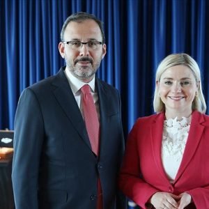 التقى وزير الشباب والرياضة التركي محمد قصاب أوغلو، وزيرة شؤون التعليم والثقافة والعلوم والرياضة الأيسلندية ليليا دوغ الفريوسدوتير.