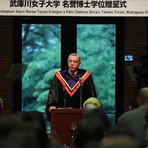 جاء ذلك في كلمة ألقاها أردوغان، الخميس، خلال حفل منحه دكتوراه فخرية من جامعة موكوغاوا اليابانية.