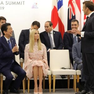 تداول إعلاميون وصحفيون أمريكيون على مواقع التواصل الاجتماعي تسجيلا مصورا بثته الرئاسة الفرنسية، يظهر إيفانكا ترامب ابنة الرئيس الأمريكي وهي تقف إلى جوار قادة أوروبيين على هامش قمة العشرين التي استضافتها أوساكا اليابانية الجمعة الماضي.